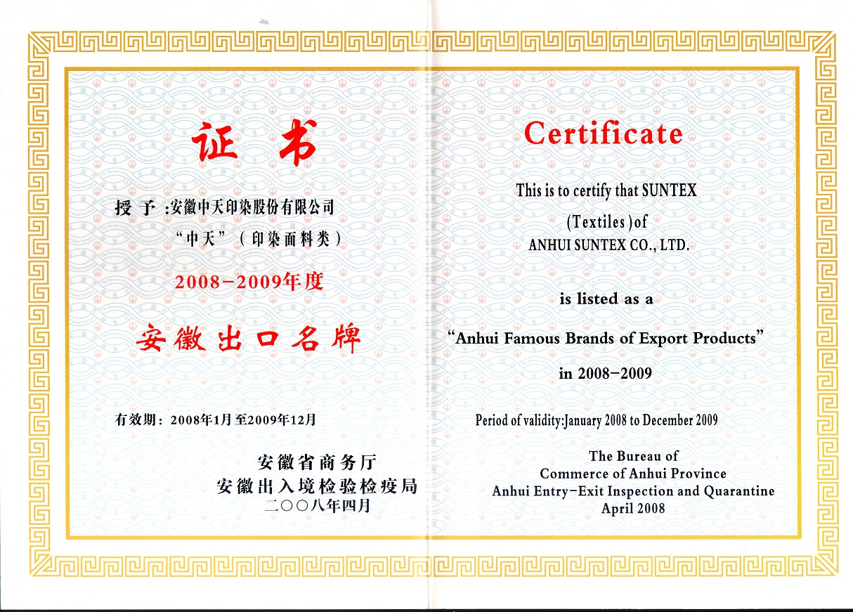2008-2009安徽出口名牌