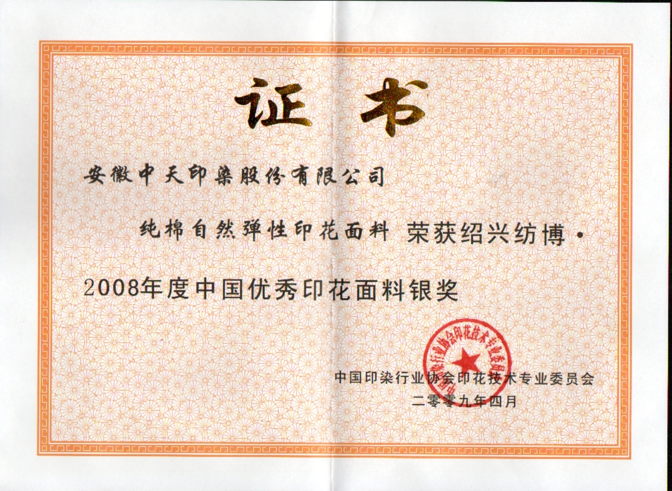 純棉自然彈性印花面料榮獲中國優秀印花面料銀獎